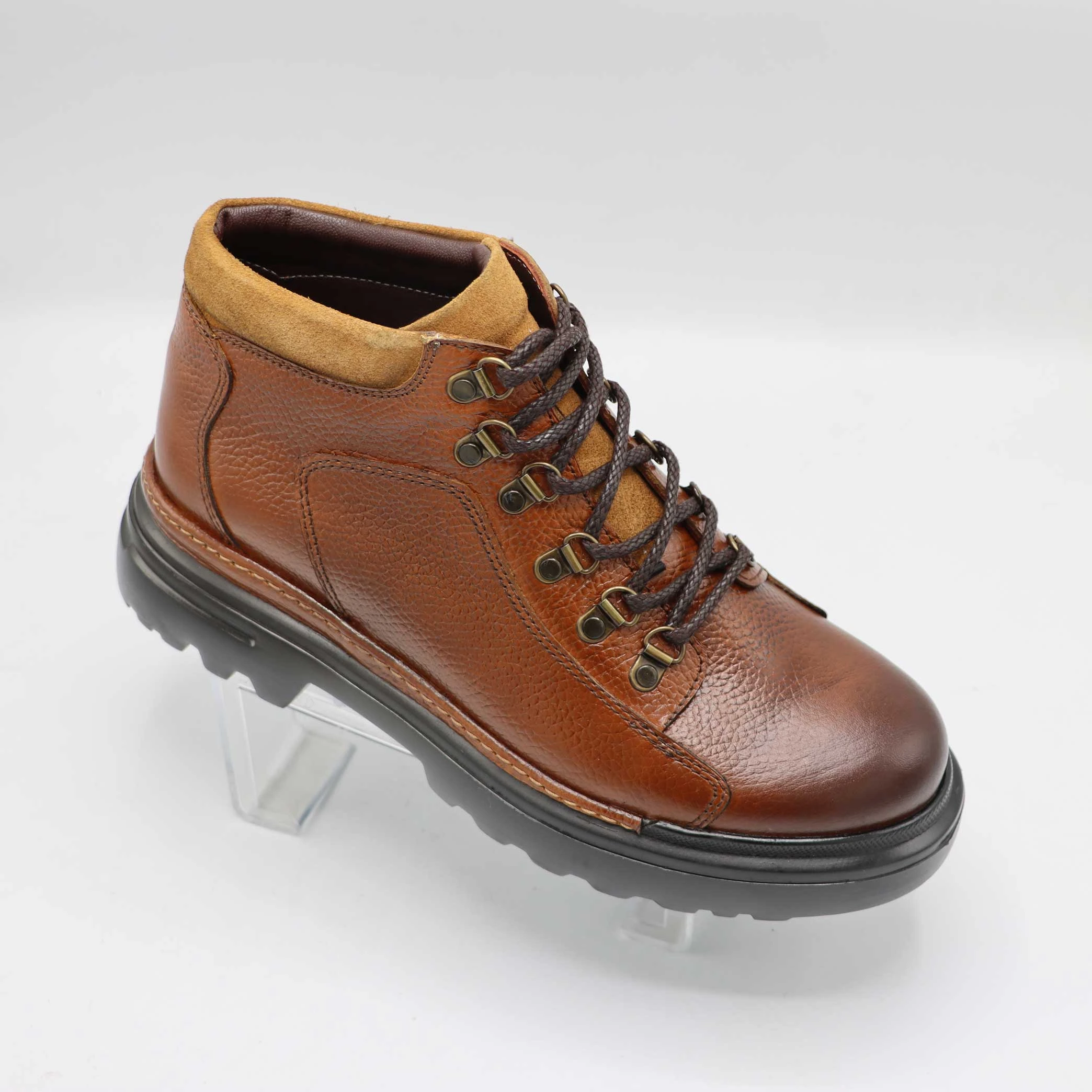 بندهای محکم قهوهای با سوراخهای فلزی مقاوم، به این بوت جلوهای مطمئن و استوار دادهاند. این طراحی علاوه بر زیبایی، ماندگاری و استحکام بیشتری ایجاد میکند. ظاهر مقاوم بوت بوفالو باعث میشود بهخوبی در استایلهای غیررسمی و نیمهرسمی جای بگیرد و برای روزهای سرد انتخابی هوشمندانه باشد.